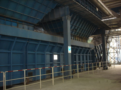 渣井布置在鍋爐下連箱下方,其主要功能是事故性儲渣和吸收鍋爐水冷壁的膨脹量。通常情況下,渣井具有不小于機組在MCR工況下4小時排渣的貯存容積,渣井支承方式通常采用獨立支撐式,當采用獨立支撐式時,應為下部撈渣機能橫向拉出檢修留有足夠的位置;渣井水封槽能有效地吸收鍋爐水冷壁垂直和水平方向的膨脹量,且水封槽中設有沖洗排污措施。當采用懸吊式安裝時,不設水封槽,但鍋爐的膨脹量由下部設備吸收。
